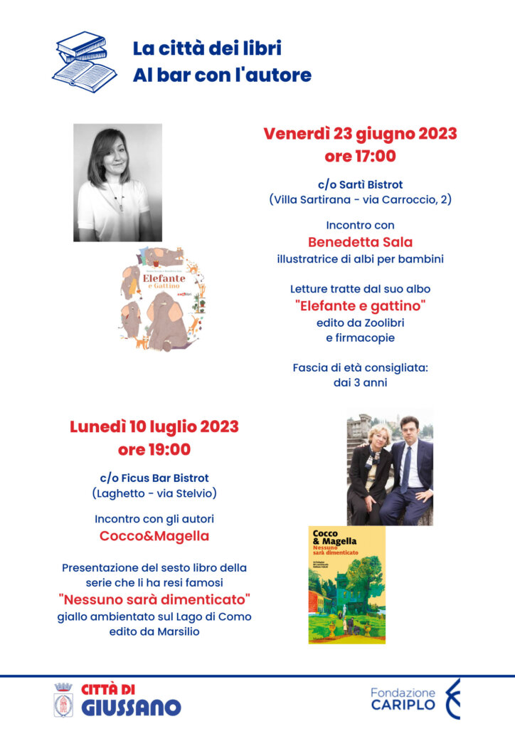 Nell’ambito del format “La Città dei libri”, progettato dal Comune di Giussano e finanziato da Fondazione Cariplo attraverso il bando “Per il libro e la lettura”, prende il via “Al bar con l’autore”, un’azione che porterà il confronto fra scrittori e lettori in luoghi dove potranno essere associati al momento della merenda o dell’aperitivo.
