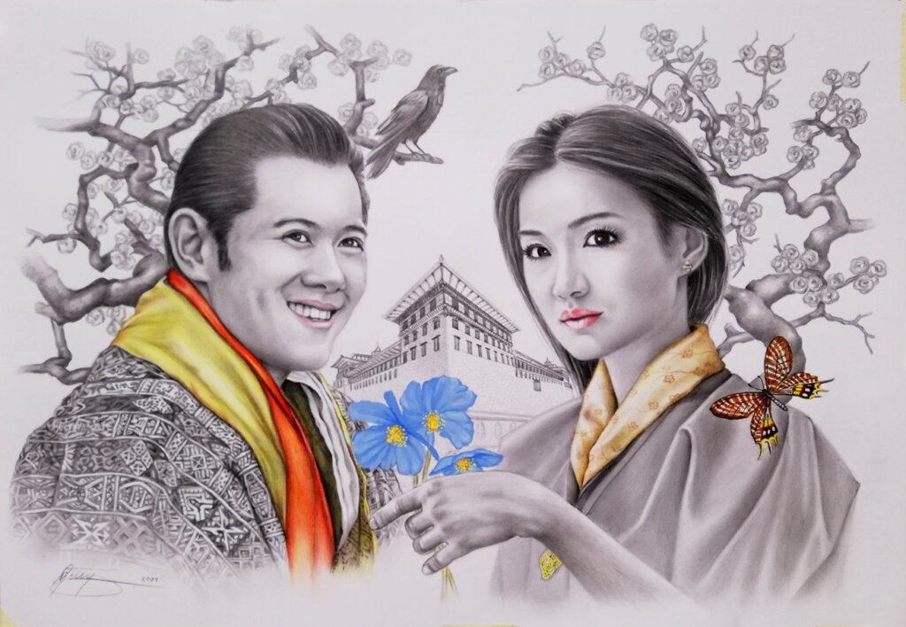 II Re Jigme nel 2011 annuncia le loro nozze al Parlamento. Dopo la cerimonia, gli sposi escono per salutare personalmente il popolo bhutanese. Il Re descrive così sua moglie: «È un essere umano meraviglioso e intelligente, condividiamo una grande cosa in comune: l’amore e la passione per l’arte. Poi chiede il permesso di baciarla in pubblico.