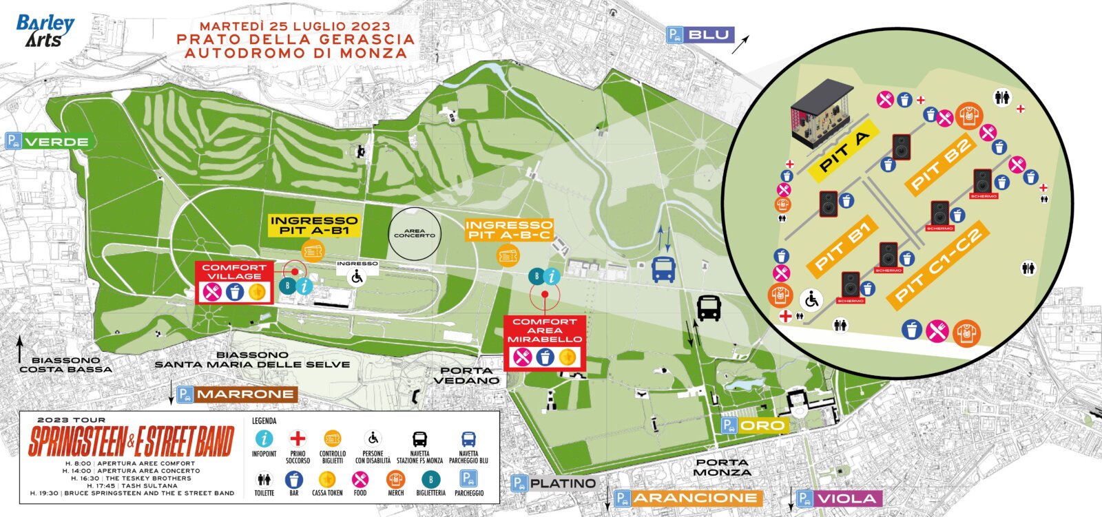 È stato completato il piano della mobilità predisposto per il Concerto di Bruce Springsteen and The E Street Band che si terrà il prossimo 25 luglio all’Autodromo di Monza, nell’area del prato della Gerascia.
